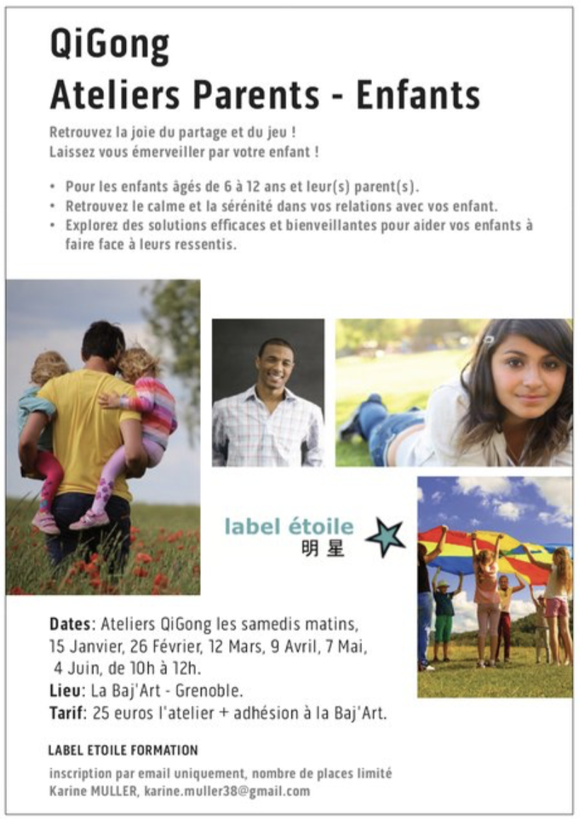 Vous évoluez avec votre enfant dans un cadre bienveillant, à la découverte des compétences clés de votre enfant. Nous expérimenterons différentes pratiques corporelles autour du souffle, de la relaxation et du qi-gong.